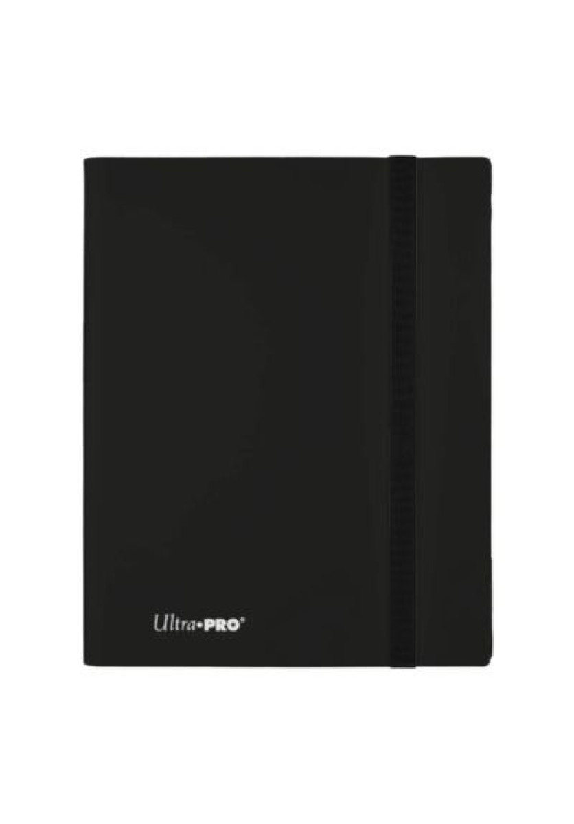 Carpeta 9 bolsillos PRO-Binder Eclipse Jet Black negro Ultra Pro. Capacidad para guardar hasta 360 cartas enfundadas, a razón de 9 bolsillos por cada una de las 20 páginas que tiene la carpeta. Tira elástica para mantener la Pro Binder cerrada. Bolsillos de carga lateral.